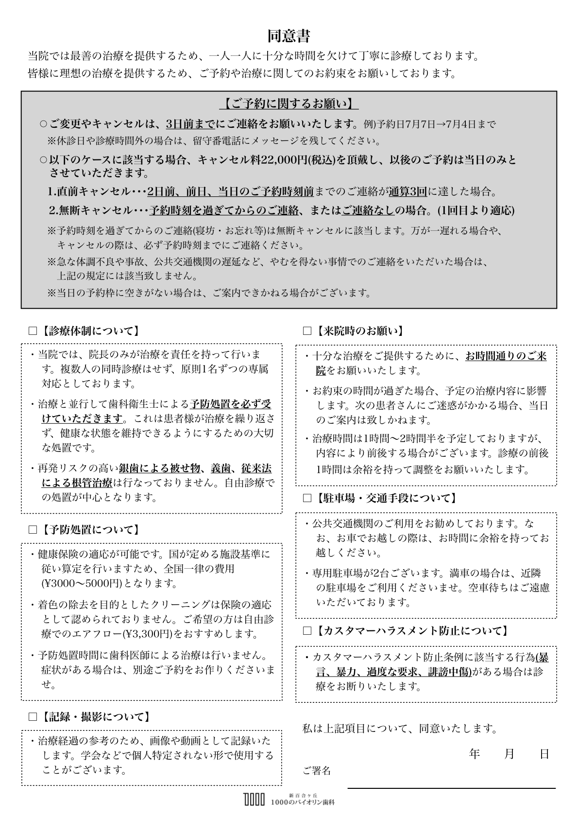 ご予約に関するお願い